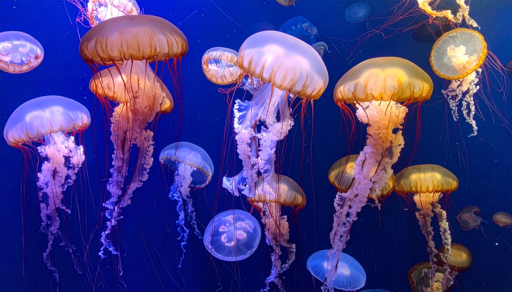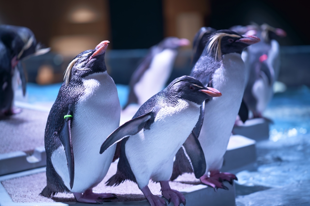 ゆらゆらと幻想的に漂うクラゲ。多様な種類と美しい光の演出が織りなす空間で、時を忘れて見つめてしまう、癒やしと神秘に満ちた浮遊する命の舞をご堪能ください。