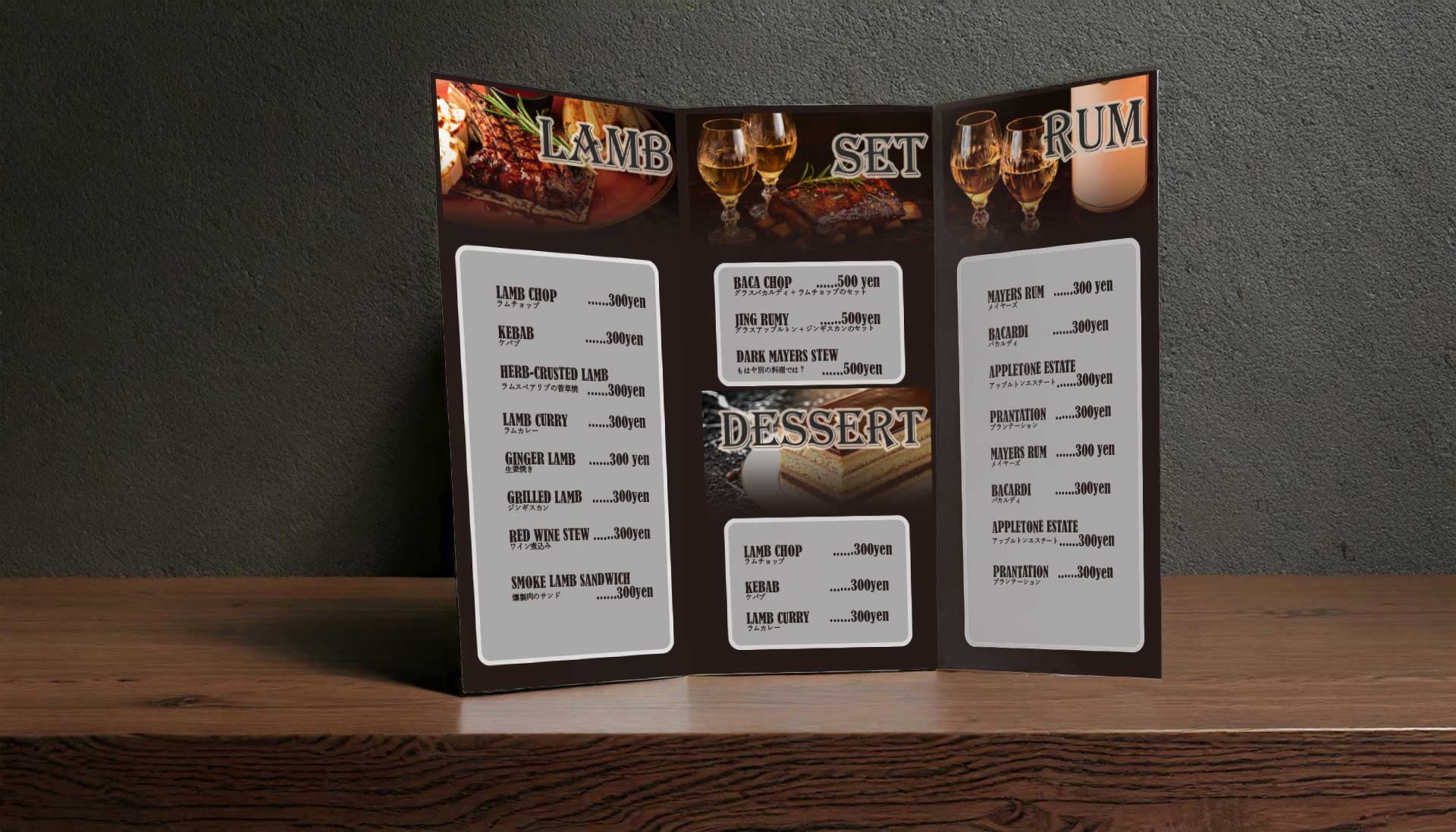 また、一冊カウンターに置いてページをめくらずにテイクアウトの対応ができるように、表紙にテイクアウトメニューを表記しました。